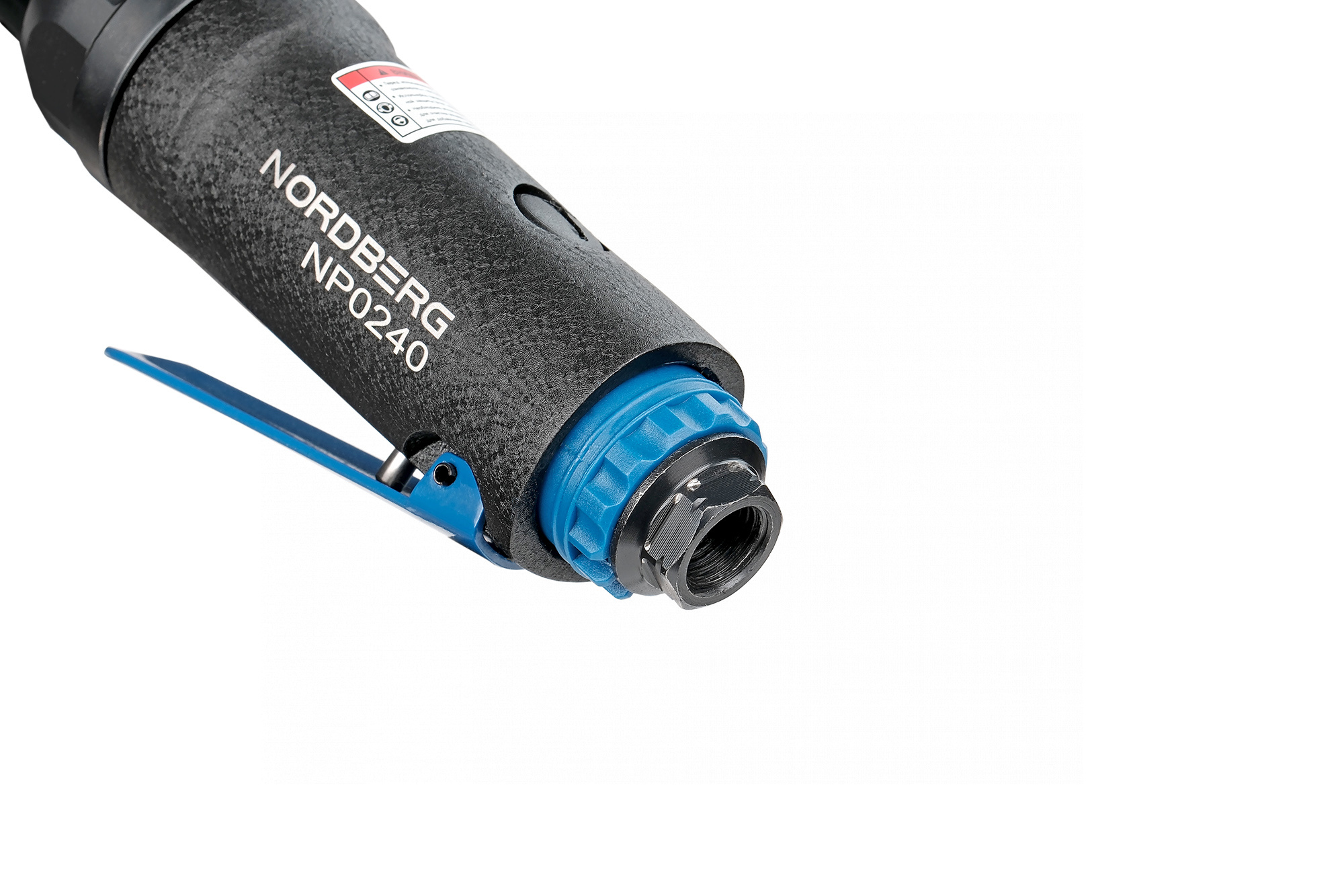 О товаре Пневмотрещотка NORDBERG NP0240 предназначена для быстрого откручивания и закручивания резьбового крепежа, в том числе и в труднодоступных местах. Имеет идеальное сочетание мощности и шума. Корпус трещотки выполнен из высококачественных, износостойких, ударопрочных материалов, и надёжно защищает рабочий блок от внешних воздействий. Точное и качественное исполнение деталей и сборки способствуют сохранению всех заявленных характеристик в период использования. Продуманная форма рукоятки и противоскользящий материал способствуют надёжному удержанию инструмента в руках во время работы. Узкий корпус и широкая клавиша пуска обеспечивают комфортное использование инструмента. Показать полностью Скрыть Характеристики Размер квадрата 3/8” Скорость вращения 400 об./мин. Рекомендуемое давление воздуха 6,2 атм. Максимальное усилие 50 Нм. Средний расход воздуха 113 л./мин. **Габариты и вес товара с упаковкой Общий вес с упаковкой - 0.7 кг Упаковка Размеры упаковки (Д*Ш*В), мм Вес, кг Упаковка №1 200 x 60 x 50 0.7 ** Теоретический вес