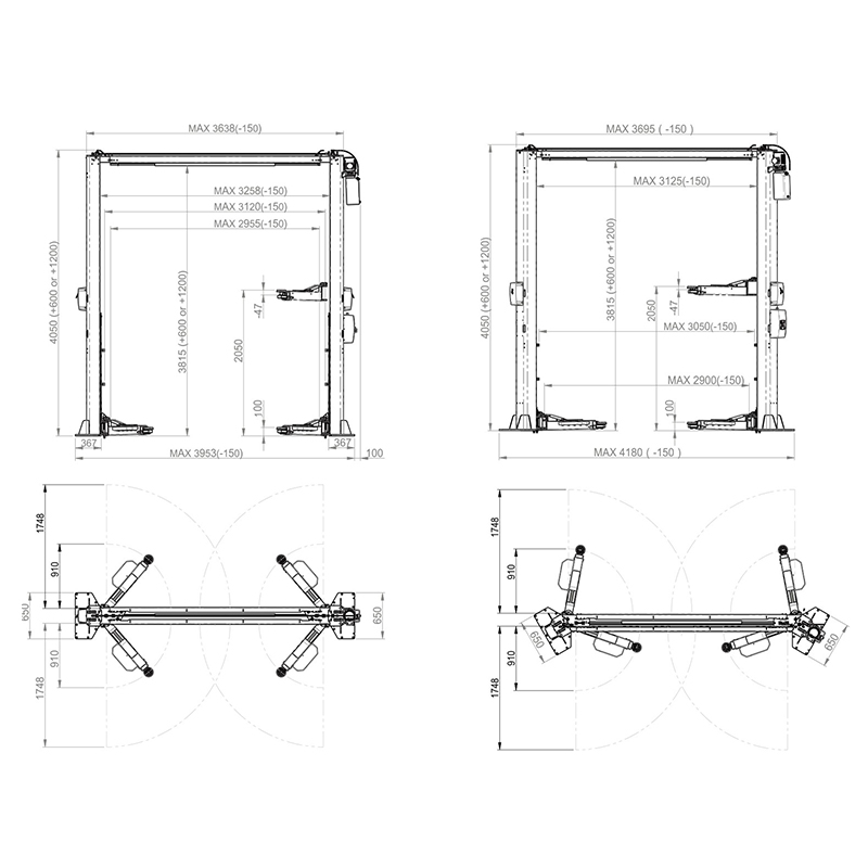 - Автоматические предохранительные стопоры обеспечивают максимальную безопасность при работе с поднятом на подъемнике автомобиле.