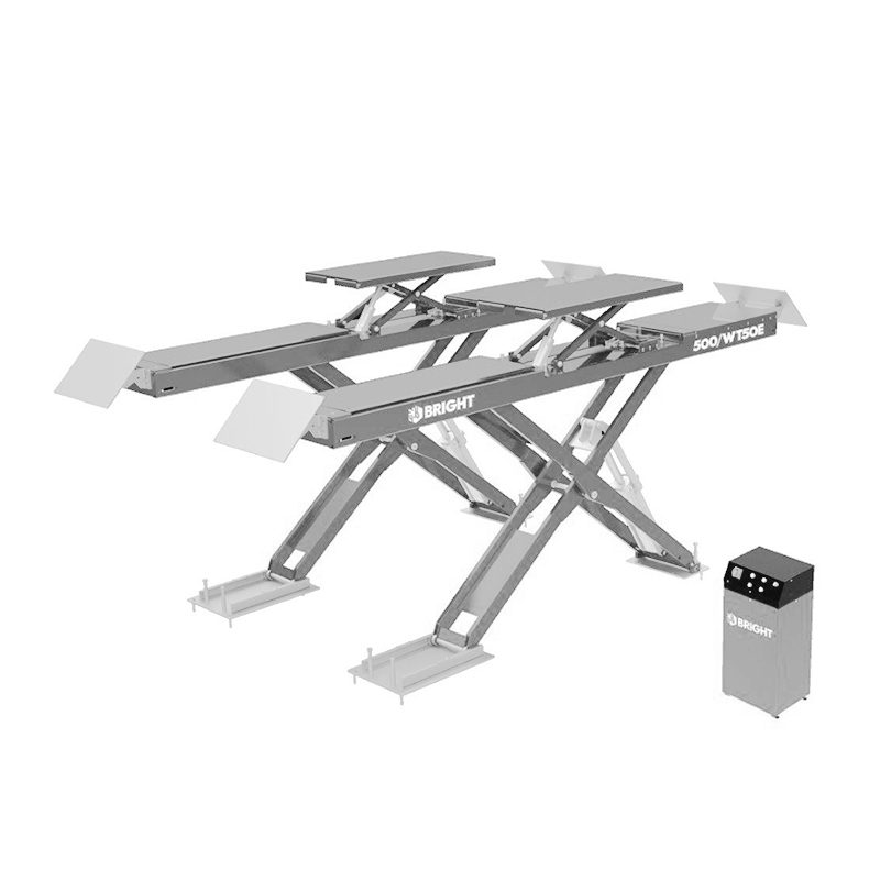 Подъемник ножничный, электрогидравлический, монтаж в уровень пола, г/п 5000 кг. Стандартно оснащен парашютным клапаном. Высота подъема 2050 мм., размеры платформ 5000х680 мм, исполнение для сход-развала 4-х колёс. Шестицилиндровая гидравлическая система стандартно оснащена парашютными клапанами, имеет функцию аварийного ручного опускания. Калибровка синхронизации платформ осуществляется с помощью выравнивания одной кнопкой с запатентованной конструкцией.