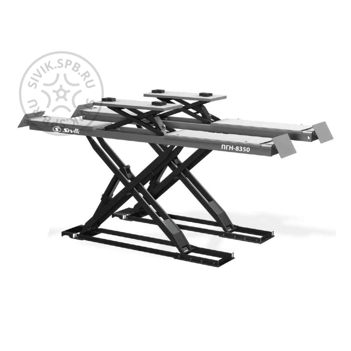 Sivik ПГН-8350 - электрогидравлический ножничный подъемник для сход-развала с подъемником второго уровня.