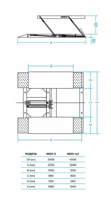 Подъемник ножничный 3 т, 220 В n633-3b_220