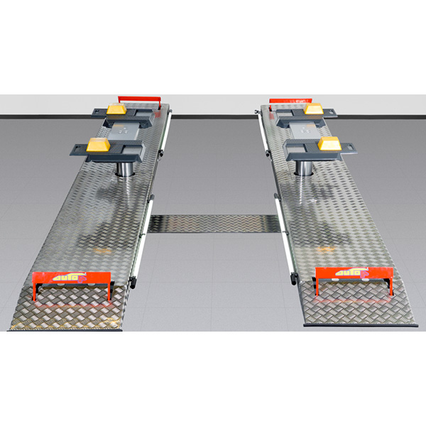 Подъемник 2-х плунжерный, платформенный со вторым уровнем, напольный для активной приемки г.п. 3,5 т. Расстояние между плунжерами 1550 мм. Размер платформ 4400*650 мм, длина платформ второго уровня регулируемая. Высота заезда 95 мм.