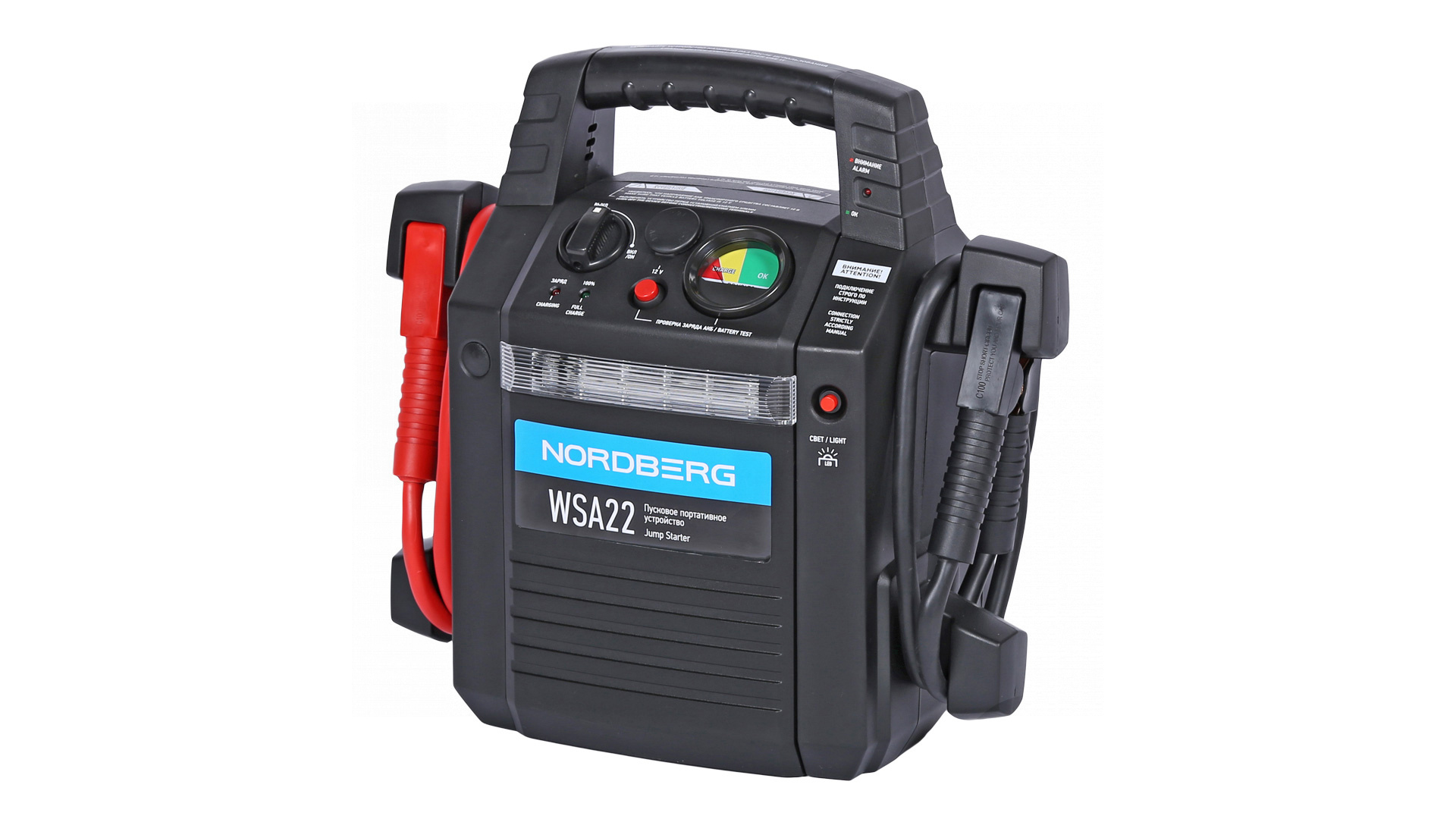 О товаре Пусковое портативное устройство NORDBERG WSA22 – компактная модель для запуска бензиновых и дизельных двигателей, а также зарядки аккумуляторных батарей. ФУНКЦИОНАЛ Устройство предназначено для быстрого запуска двигателей транспортных средств с аккумуляторной батареей 12 В в условиях, когда аккумулятор транспортного средства разряжен. Бустер также используется для зарядки телефонов, планшетов и видеокамер и др. устройств у которых входное напряжение ЗУ составляет 12 В. ПРЕИМУЩЕСТВА И ОСОБЕННОСТИ Совместим со всеми типами свинцово-кислотных аккумуляторов: STD-CA, WET, MF, EFB, GEL, AGM Максимальный пусковой ток 1200 А Емкость встроенной AGM батареи 22 А·ч Розетка 12 В для подключения периферийных устройств Может работать при температуре окружающего воздуха до -40 °С Встроенный светодиодный фонарь УДОБСТВО ИСПОЛЬЗОВАНИЯ Эргономичная ручка для переноски Звуковая и световая сигнализация о режимах работы Небольшой вес и габариты КОМПЛЕКТАЦИЯ пусковое устройство NORDBERG WSA22 кабель с двумя штекерами для розетки 12 В блок питания 220 В паспорт-инструкция Бустер NORDBERG WSA22 – универсальное устройство, позволяющее в кратчайшие сроки как запустить различные двигатели, так и зарядить мобильные устройства. Показать полностью Скрыть Характеристики Емкость встроенного аккумулятора, А·ч 22 Максимальный пусковой ток, А 1200 Напряжение заряда, В 12 Вес товара, кг 9 **Габариты и вес товара с упаковкой Общий вес с упаковкой - 10.6 кг Упаковка Размеры упаковки (Д*Ш*В), мм Вес, кг Упаковка №1 440 x 265 x 420 10.6 ** Теоретический вес