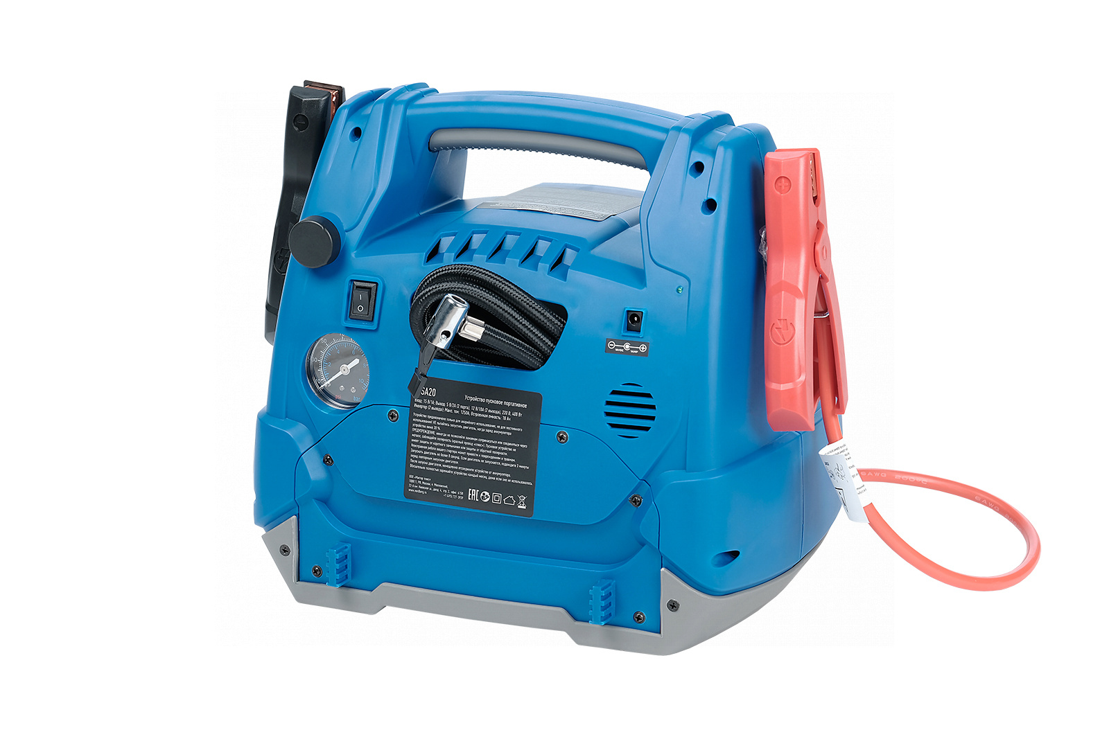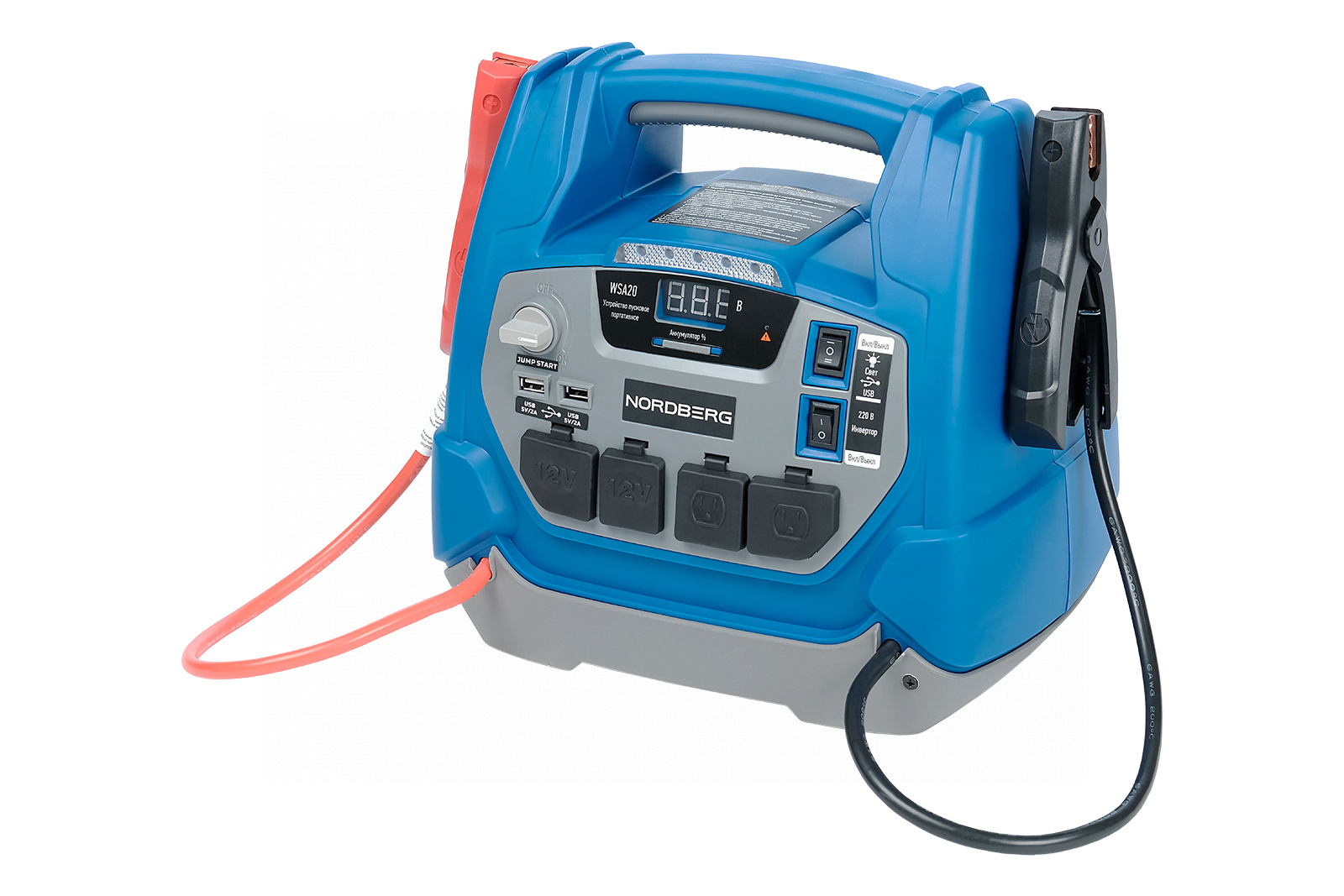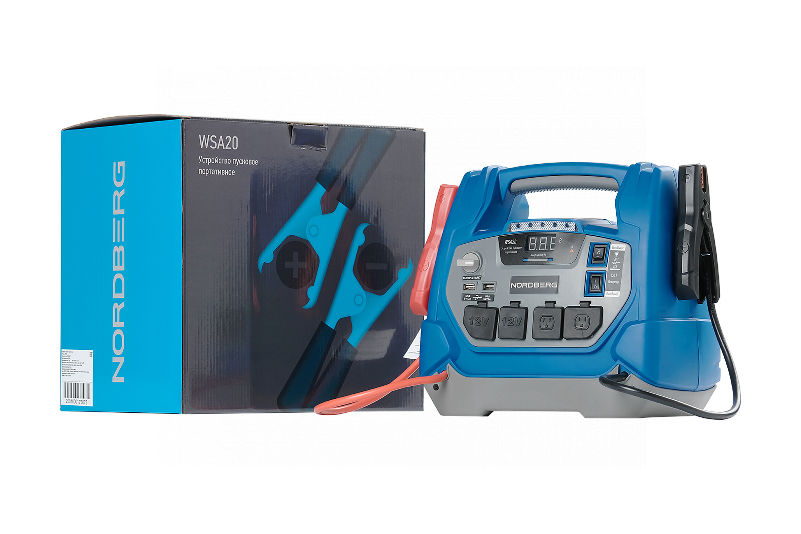 О товаре Пусковое портативное устройство NORDBERG WSA20 – необходимое оборудование для запуска двигателя легковых автомобилей и мототехники с разрядившейся АКБ, а также зарядки аккумуляторных батарей. ФУНКЦИОНАЛ Устройство предназначено для быстрого запуска двигателей транспортных средств в условиях, когда аккумулятор транспортного средства разряжен. Также используется для зарядки телефонов, планшетов и видеокамер и других устройств. ПРЕИМУЩЕСТВА Сила пускового тока 600 А. Встроенный аккумулятор емкостью 18 А·ч. Большая емкость аккумулятора позволяет запускать двигатели: бензиновые до 7 л, дизельные до 4 л. Встроенный светодиодный фонарь значительно облегчает подключение в темноте. Встроенный компрессор для подкачки шин, делает устройство еще более функциональным и универсальным. Клеммы удобно фиксируются на корпусе устройства. УДОБСТВО ИСПОЛЬЗОВАНИЯ Информативный дисплей для контроля процесса зарядки. Небольшой вес и габариты Эргономичная рукоятка для комфортной переноски Необходимые кабели и переходники в комплекте КОМПЛЕКТАЦИЯ Устройство WSА20 Кабель питания Комплект проводов для подключения к АКБ Комплект переходников Комплект предохранителей Паспорт-инструкция Многофункциональное пусковое устройство NORDBERG WSA20 позволит быстро и легко и запустить различные двигатели или зарядить мобильные устройства. Показать полностью Скрыть Характеристики Емкость встроенного аккумулятора, А·ч 18 Максимальный пусковой ток, А 600 Максимальный ток заряда, А 40 Напряжение заряда, В 5/12 Напряжение, В 220 **Габариты и вес товара с упаковкой Общий вес с упаковкой - 9.2 кг Упаковка Размеры упаковки (Д*Ш*В), мм Вес, кг Упаковка №1 345 x 265 x 335 9.2 ** Теоретический вес