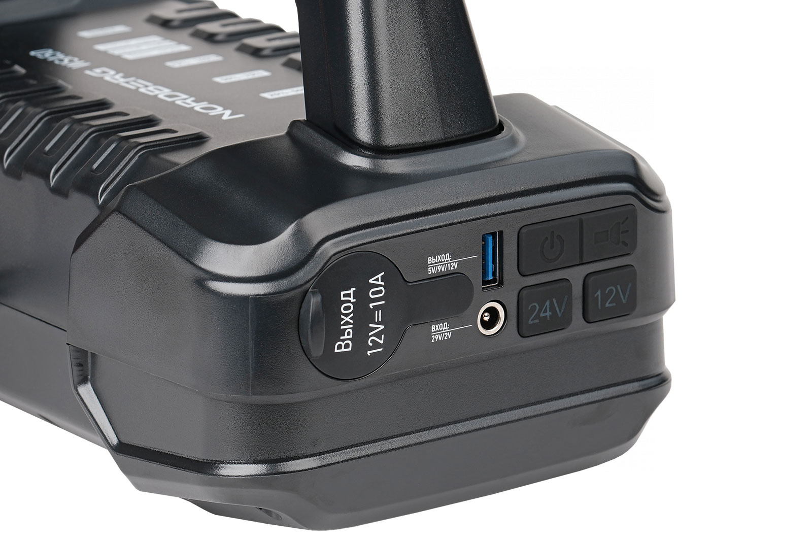 О товаре Пуско-зарядное портативное устройство NORDBERG WSA50 – компактная и мощная модель с большой емкостью встроенного аккумулятора для запуска бензиновых и дизельных двигателей. ФУНКЦИОНАЛ Устройство предназначено для быстрого запуска двигателей транспортных средств с аккумуляторными батареями 12 В и 24 В в условиях, когда аккумулятор транспортного средства разряжен. Бустер также используется для зарядки телефонов, планшетов, видеокамер и других устройств, напряжение ЗУ которых составляет 5 В, 9 В. ПРЕИМУЩЕСТВА Максимальный пусковой ток 1000 А, пиковый ток 2000 А Режим автоматического подогрева литиевой батареи при температуре ниже -20 °С Встроенный мощный светодиодный фонарь-прожектор с обычным и сигнальным режимами работы УДОБСТВО ИСПОЛЬЗОВАНИЯ Отображение индикации заряда на корпусе Небольшой вес и габариты УНИВЕРСАЛЬНОСТЬ Пусковое устройство может применяться как для легкового, так и для грузового транспорта. Возможность зарядки любых мобильных устройств через USB-порт. КОМПЛЕКТАЦИЯ Пусковое устройство NORDBERG WSA50 Зарядное устройство с сетевым проводом Комплект зажимов Паспорт-инструкция Бустер NORDBERG WSA50 – универсальное устройство, позволяющее в кратчайшие сроки запустить различные двигатели или зарядить мобильные устройства. Показать полностью Скрыть Характеристики Емкость аккумулятора, А•ч 56 Выход 1 (быстрая зарядка) 5В/2А, 9В/2А, 12В/1,5А Выход 2 12В/10А Вход 29В/2А Пусковой ток, А 1000 Пиковый ток, А 2000 Рабочая температура, °С от -40 до +60 Вес, кг 2,8 Яркость фонаря, лм 200 **Габариты и вес товара с упаковкой Общий вес с упаковкой - 3.5 кг Упаковка Размеры упаковки (Д*Ш*В), мм Вес, кг Упаковка №1 185 x 230 x 320 3.5 ** Теоретический вес