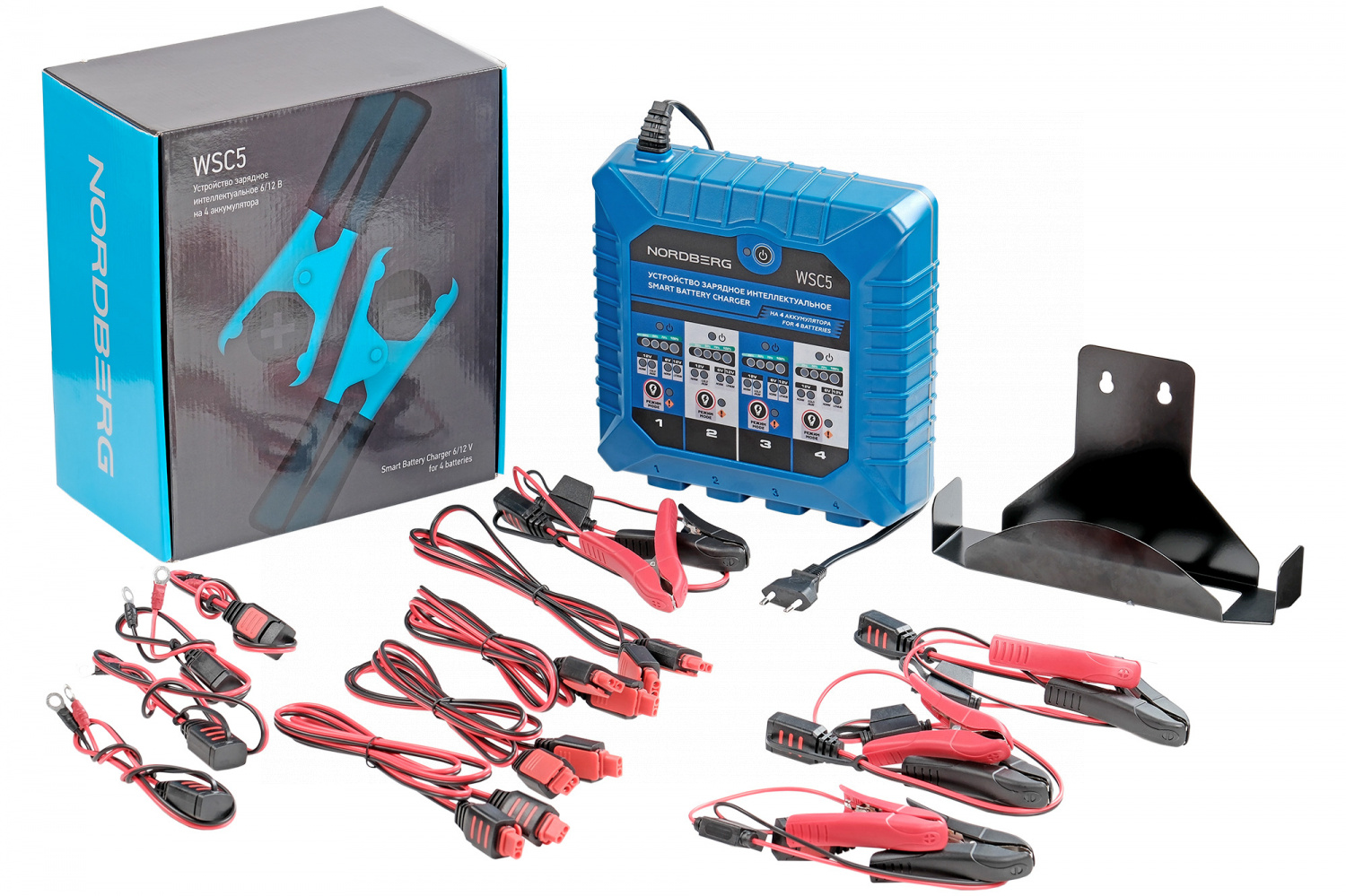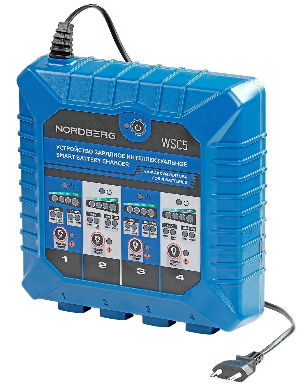 О товаре NORDBERG WSC5 — интеллектуальное зарядное устройство для профессионального использования на СТО и в сервисных центрах. ФУНКЦИОНАЛ Предназначен для зарядки 6В и 12В свинцово-кислотных аккумуляторов всех типов — WET, MF, EFB, GEL, AGM — а также 12В литиево-ионных аккумуляторов. Заряжает на 100% до 4 аккумуляторов одновременно. Обеспечивает безопасную, быструю и полную зарядку с автоматическим контролем параметров на каждом канале. ПРЕИМУЩЕСТВА Выходной ток 4×1,5 А — стабильная зарядка без перегрева, Ёмкость поддерживаемых АКБ: от 2 до 60 А·ч — охватывает широкий спектр применений, Автоматический переход в режим хранения — предотвращает перезаряд и продлевает срок службы батареи, Полная защита: от перегрева, короткого замыкания, обратной полярности и искрения, Память последней сессии — продолжает работу с прежними настройками, Степень защиты IP65 — допускает эксплуатацию во влажных и запылённых условиях. УДОБСТВО ИСПОЛЬЗОВАНИЯ Простое управление режимами через панель с LED-индикацией, Поддержка 5 режимов работы — включая зарядку при низких температурах и для литиевых АКБ, Универсальные зажимы и коннекторы — подходят для различных типов клемм, Индикация уровня заряда — от 25% до 100% по светодиодной шкале, Возможность настенного монтажа — экономит место в рабочей зоне. КОМПЛЕКТАЦИЯ Зарядное устройство WSC5 — 1 шт, Кабель питания — 1 шт, Провод для подключения к АКБ — 4 шт, Зажимные коннекторы — 4 шт, Кольцевые коннекторы — 4 шт, Переходники для подключения к АКБ — 4 шт, Кронштейн для настенного крепления — 1 шт, Установочные болты — 4 шт, Предохранители — 4 шт, Инструкция — 1 шт. NORDBERG WSC5 — надёжное и современное решение для быстрой и безопасной зарядки аккумуляторов в условиях автосервиса. Показать полностью Скрыть Характеристики Тип АКБ WET, MF, EFB, GEL, AGM, LIB Быстрая зарядка нет Максимальный ток заряда, А 1,5 Минимальная емкость аккумулятора, А·ч 2 Максимальная емкость аккумулятора, А·ч 60 Напряжение заряда, В 6/12 Напряжение, В 220 Потребляемая мощность, Вт 120 Выходной ток 6 VDC – 1,5 A, 12 VDC – 1,5 A **Габариты и вес товара с упаковкой Общий вес с упаковкой - 3.15 кг Упаковка Размеры упаковки (Д*Ш*В), мм Вес, кг Упаковка №1 300 x 270 x 160 3.15 ** Теоретический вес