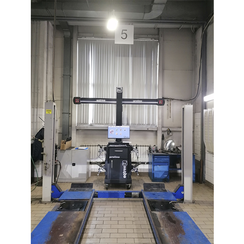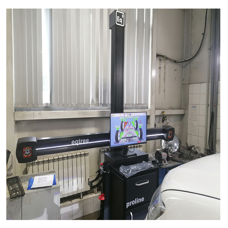 Стенд 'сход-развал' eqtree на основе 3D-технологии предназначен для измерения и регулировки углов установки колес (РУУК) легковых автомобилей, внедорожников и лёгкого коммерческого транспорта.