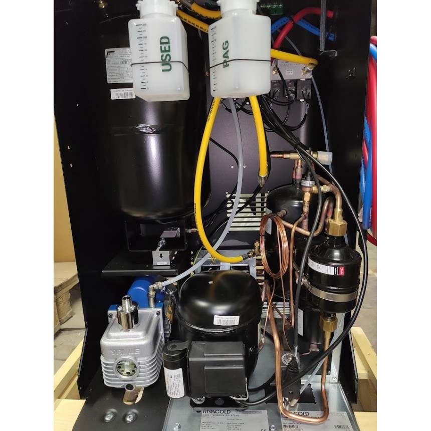 - Air purge system (система очистки хладагента) - эксклюзивная автоматическая система мониторинга наличия неконденсируемых газов (в зависимости от давления и температуры в баллоне). После обнаружения – для удаление неконденсируемых газов из баллона оператору в программе предлагается удерживать чеку в открытом положении определённое кол-во секунд.