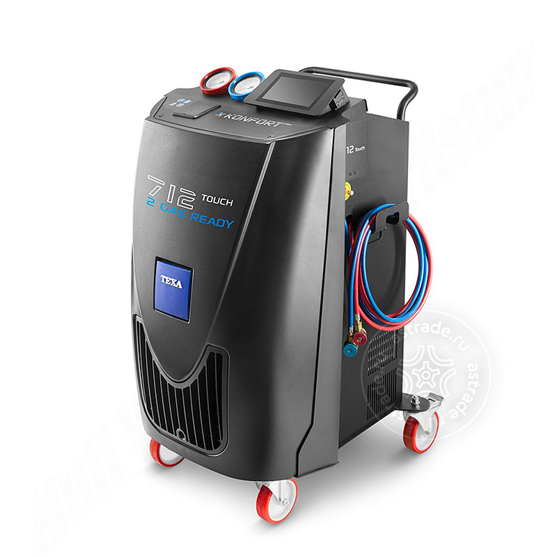 TEXA KONFORT 712 TOUCH – автоматическая установка с сенсорным экраном для заправки и обслуживания автомобильных кондиционеров, обладающая производительностью насоса – 100 л/мин, которая предназначена для откачивания хладагента, рециркуляции, вакуумирования и заправки газа в кондиционерные системы легковых автомобилей и грузовиков. Версия с 7 сенсорным экраном и встроенной связью Wi-Fi и Bluetooth.