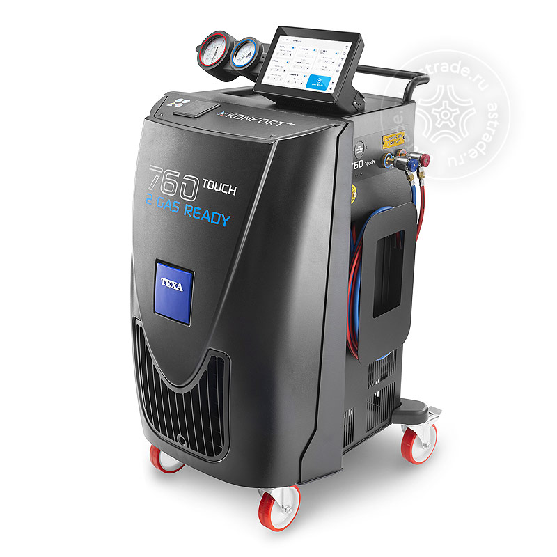 TEXA KONFORT 760 TOUCH для R134a - мощные заправочные станции, оборудованы герметичными бутылочками для масла, управление обслуживанием полностью автоматическое, устройство блокировки/разблокировки весов и контроль правильности веса хладагента.