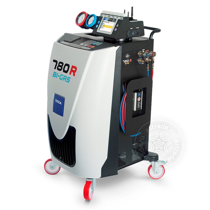 TEXA KONFORT 780R BI-GAS - самая совершенная станция из линейки TEXA 700R. Укомплектована двумя резервуарами и включает две отдельные системы для выкачки, рециркуляции и перезарядки, тем самым может работать с двумя хладагентами R134a и R1234yf одновременно.